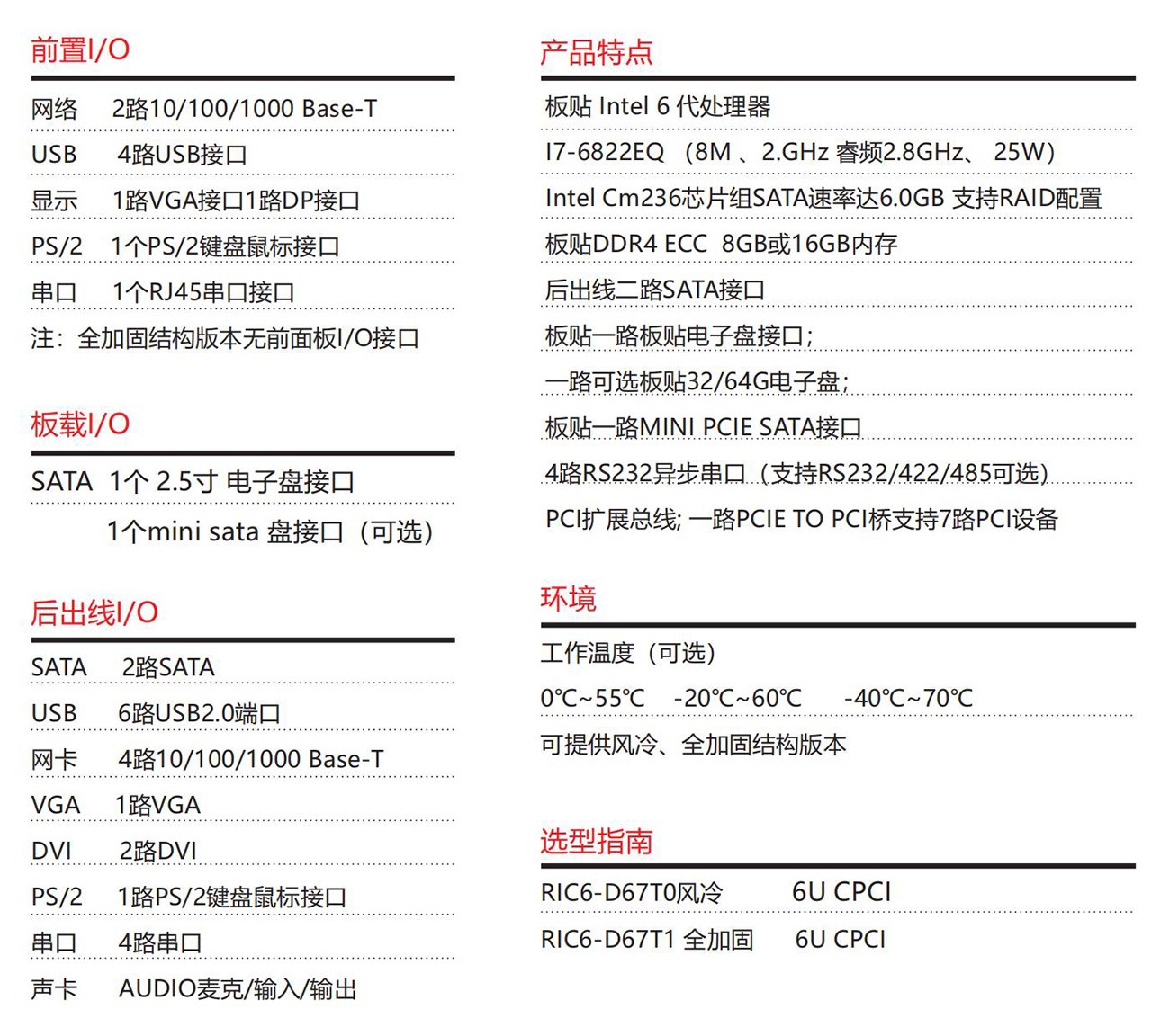采用Intel? 六代處理器設計方案,CompactPCI 6U 架構 符合 PICMG2.0 R3.0、PICMG2.16、PICMG2.3標準和海軍標主板標準。具備豐富的外圍接口;設計了高效的散熱系統,可顯著提高處理器的浮點運算性能,以太網、PCIe to PCI擴展總線, 滿足視頻采集與處理、雷達和聲吶等應用對高速數據傳輸的要求。專為惡劣環境使用而設計,滿足無人機、裝甲車、水面艦 艇等軍工領域。