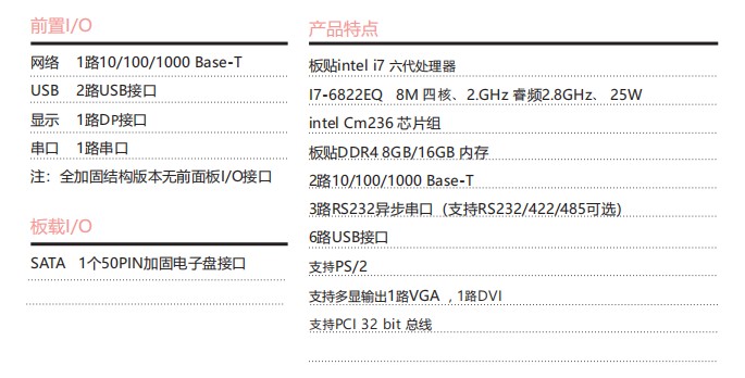 板貼Intel? I7六代處理器,CompactPCI 3U架構,具備豐富的外圍接口;設計了高效的散熱系統,可顯著提高處理器的浮點運算性能,以太網、PCIe TO PCI擴展總線、滿足視頻采集與處理等應用對高速數據傳輸的要求。專為惡劣環境使用而設計,滿足無人機、裝甲車、水面艦艇等應用需求。